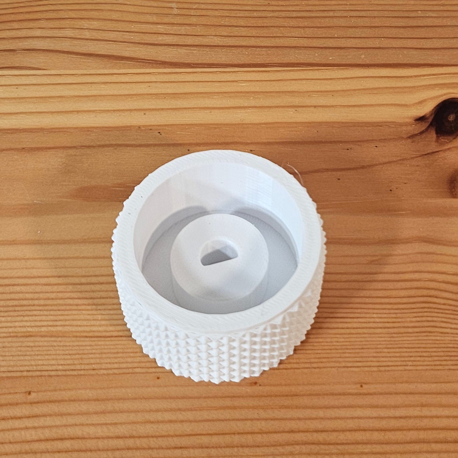 Dieser strukturierte Drehknopf wurde als Ersatzteil fĂŒr meinen BBQ Dragon Gasgrill entworfen. Die groĂe AuflageflĂ€che und die Riffelstruktur bieten sicheren Halt â und genaue einstellung.