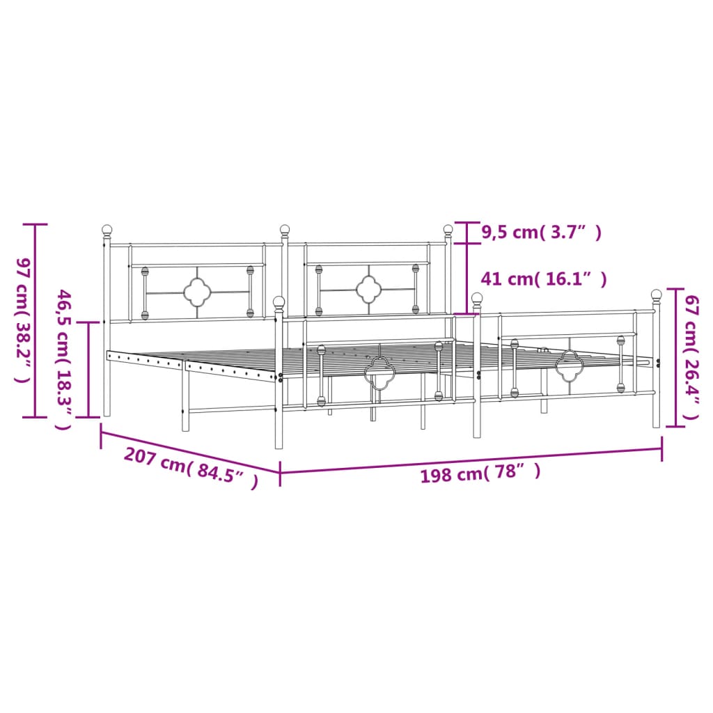 Bed frame with head and footboard metal white 193x203 cm
