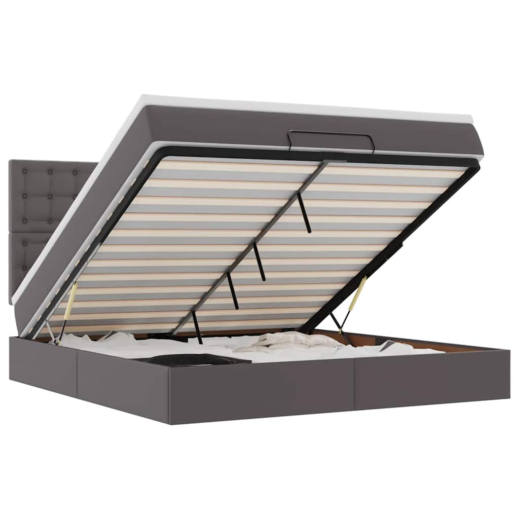 Ottoman-Bett mit Matratze & LEDs Grau 180x200 cm Kunstleder