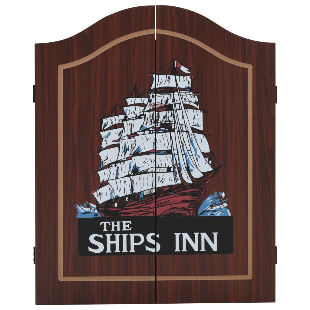Our darts set consists of a darts cabinet, a sisal dartboard, and six steel-tipped darts, making it an excellent choice for both professionals and beginners. With its attractive design, the MDF darts cabinet with two hinged doors will complement any interior. It offers space for secure dart storage and features integrated scoreboards. The dartboard is made of high-quality sisal and features special wires to reduce bounce-outs and improve your hitting rate. The sisal dartboard is a perfect match for the included darts with hardened steel tips. The darts also feature non-slip barrels that ensure a good grip and contribute to a well-balanced control spring.