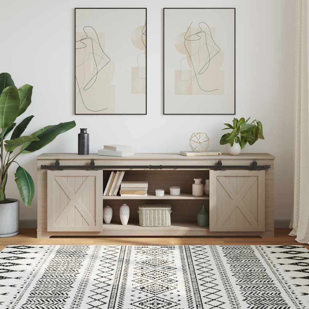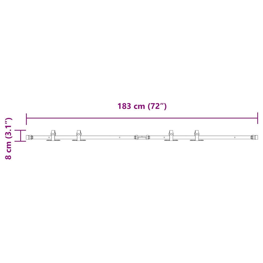 With this sliding door fitting set, your closet doors can be opened and closed silently and effortlessly.Durable material: The sliding door fitting is made of powder-coated carbon steel, which is robust, durable and hard-wearing.Silent and smooth running: Thanks to the internal bearings, your doors glide smoothly and silently. Door stops are also included to prevent the rollers from derailing, while the rubber seals dampen the shock of the rollers and reduce noise.Versatile: This set contains 2 slide rails (with a total length of 183 cm) and 2 wear-resistant rollers. It is intended for sliding doors with a thickness of 22-25 mm and can be used in barns, kitchens, work rooms, etc.Timeless design: With its compact, timeless design, the sliding door fitting cuts a fine figure in any interior.