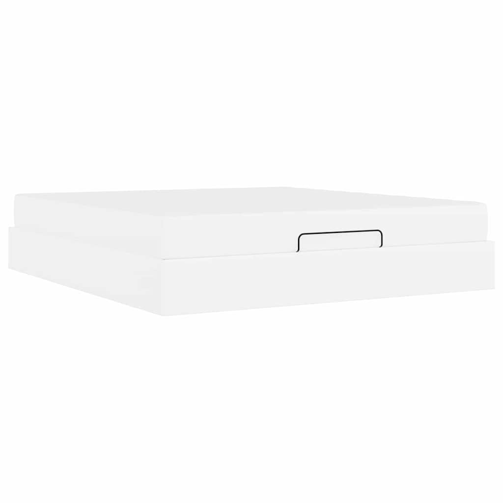 Bettgestell mit Matratze Reinweiß 180 x 200 cm Kunstleder