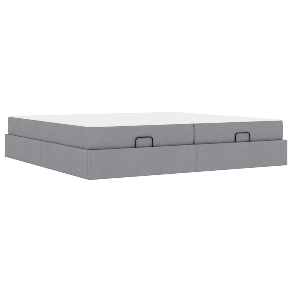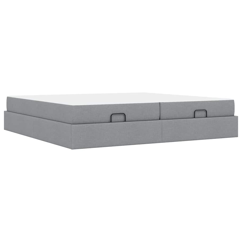 Bettgestell mit Speicher Hellgrau 200 x 200 cm Stoff