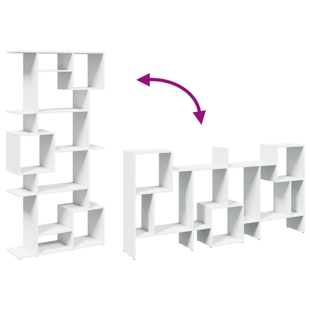 Dieses klassische Bücherregal mit elegantem Design ist eine dekorative und praktische Ergänzung für jede Wohneinrichtung.Langlebiges Material: Holzwerkstoff ist ein Material außergewöhnlicher Qualität mit glatter Oberfläche. Er zeichnet sich durch Festigkeit, Stabilität und Feuchtigkeitsbeständigkeit aus.Viel Stauraum: Das Bücherregal verfügt über 9 geräumige Fächer und bietet dadurch reichlich Platz, um deine Zeitschriften, Bücher, DVDs, Multimediageräte und andere dekorative Gegenstände übersichtlich und griffbereit aufzubewahren.Vielseitiges Regal: Das Bücherregal kann auch als Raumteiler dienen und ist somit die perfekte Wahl für deinen Wohnraum.Pflegeleicht: Dieses Regal lässt sich leicht mit einem feuchten Tuch reinigen und erfordert wenig Pflege.Achtung:Um ein Umkippen zu vermeiden, sollte dieses Produkt mit der mitgelieferten Wandhalterung gesichert werden.