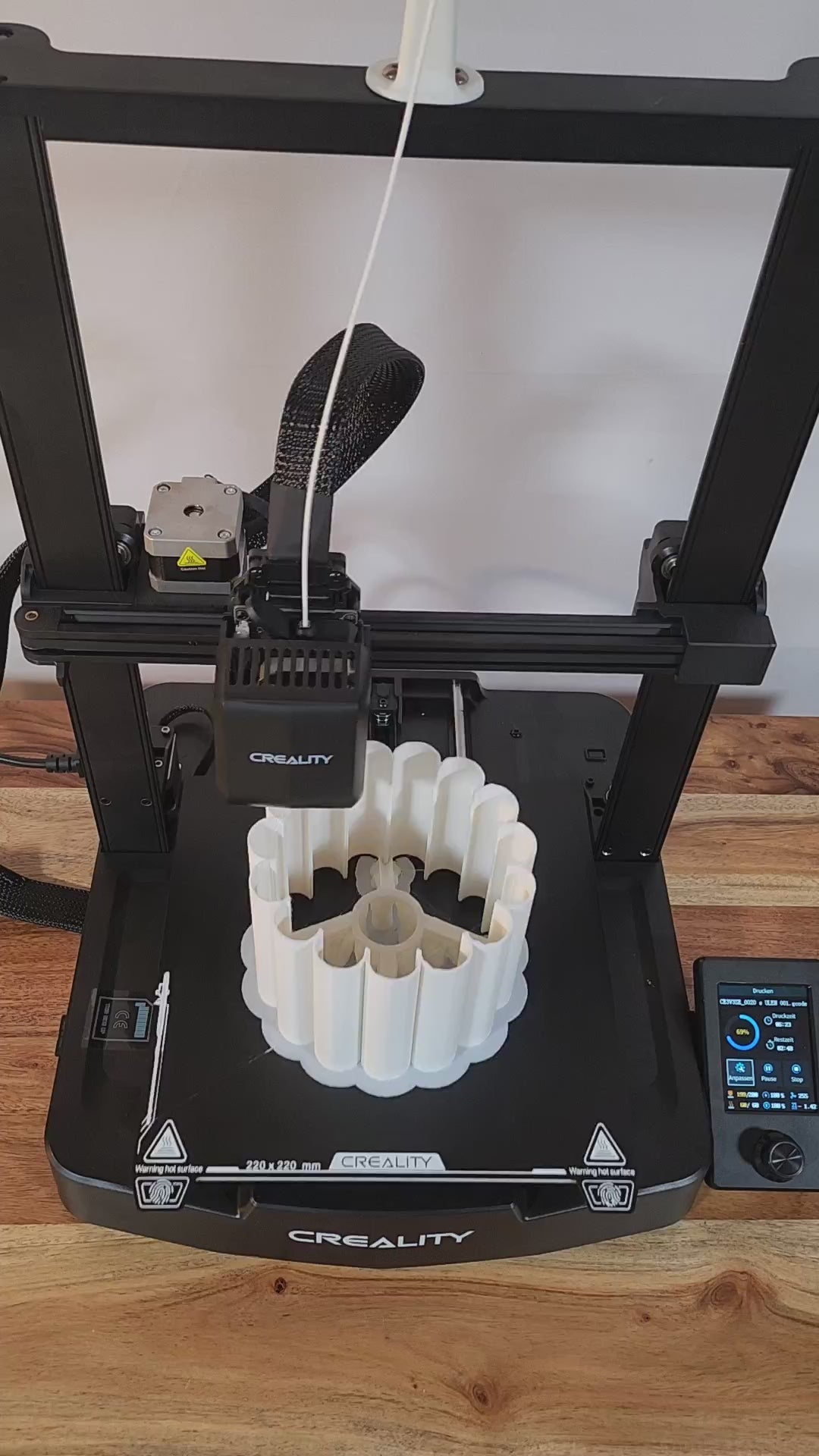 Der Lampenschirm wird im 3D-Druckverfahren gefertigt und ist lichtdurchlässig ausgeführt. Eine feine Struktur ist typisch für diese Herstellungsart und gehört zum handwerklichen Charakter. Kleine Unterschiede in Oberfläche und Detail sind möglich und machen jedes Stück individuell.