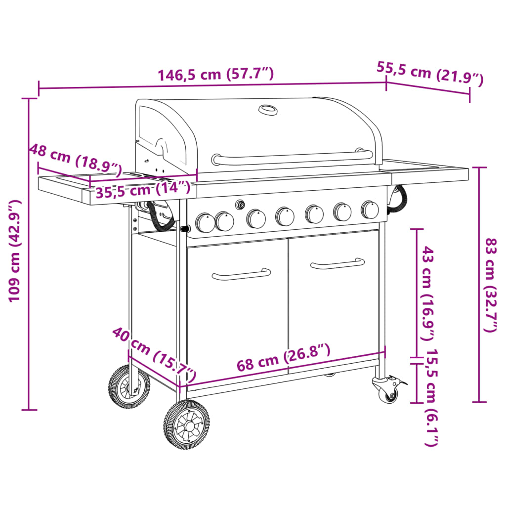 Grill à gaz à 7 flammes en acier thermolaqué noir