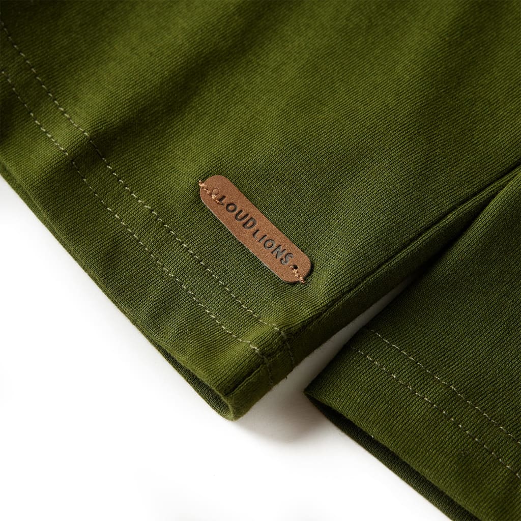 Unsere Bekleidungslinie umfasst erschwingliche, hochwertige und langlebige Alltagskleidung für Kinder im Alter von 1,5 bis 10 Jahren. Unser Sortiment umfasst Jacken, Pullover, Hemden und vieles mehr, die in verschiedenen Stilen, Größen und Farben erhältlich sind. Um dem hohen Qualitätsstandard auf dem Markt gerecht zu werden, verwenden wir hochwertige Materialien und fortschrittliche Fertigungstechniken. Dieses Kinder-T-Shirt hat lange Ärmel, einen Rundhalsausschnitt und eine gerade Passform. Das T-Shirt in dunklem Khaki ist mit kleinen niedlichen Affen und der Beschriftung "Little Monkey" bedruckt. Das Langarmshirt besteht zu 100 % aus Baumwolle, die mit einer Silikon- und Enzym-Waschung behandelt wurde und sicher daher sehr weich und angenehm anfühlt. Gut zu wissen: Die Größentabelle in der Abbildung enthält Abmessungen für Kinder im Alter von 1,5 bis 10 Jahren, die die Größe, Brust, Taille und Hüfte abdecken. So kannst du leicht die Größe finden, die für dein Kind geeignet ist.