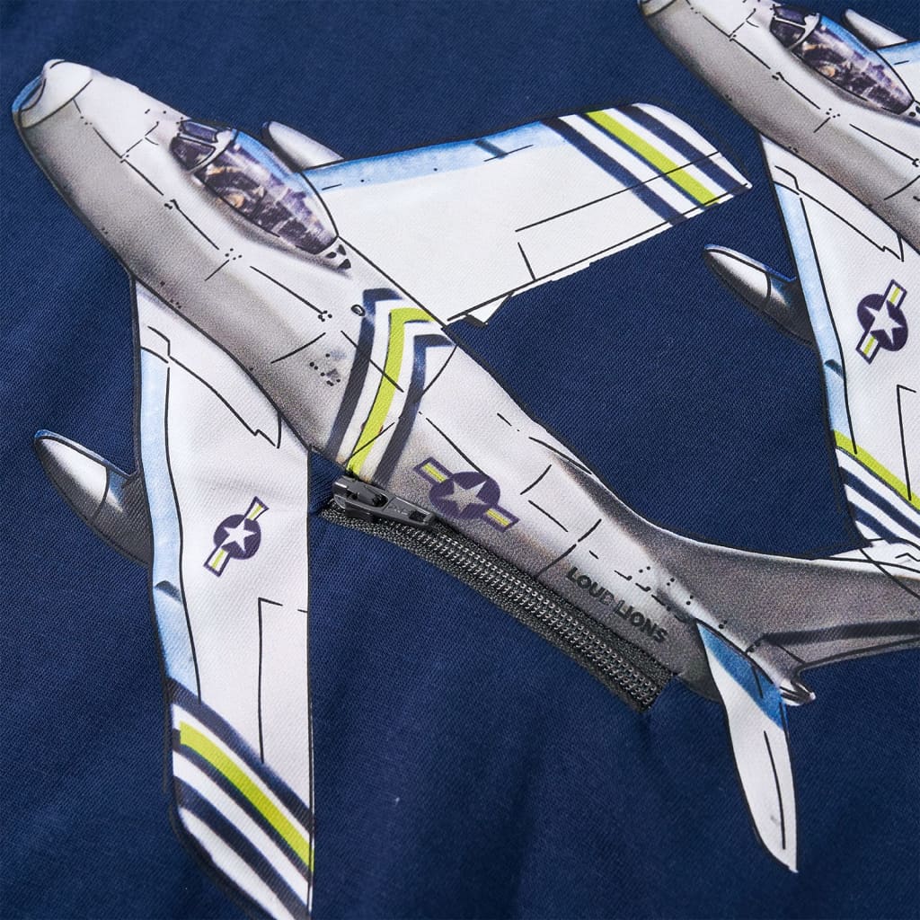 Unsere Bekleidungslinie umfasst erschwingliche, hochwertige und langlebige Alltagskleidung für Kinder im Alter von 1,5 bis 10 Jahren. Unser Sortiment umfasst Jacken, Pullover, Hemden und vieles mehr, die in verschiedenen Stilen, Größen und Farben erhältlich sind. Um dem hohen Qualitätsstandard auf dem Markt gerecht zu werden, verwenden wir hochwertige Materialien und fortschrittliche Fertigungstechniken. Dieses Kinder-T-Shirt hat lange Ärmel, einen Rundhalsausschnitt und eine gerade Passform. Das T-Shirt in Marineblau ist mit Flugzeugen bedruckt. Das Langarmshirt besteht zu 100 % aus Baumwolle und fühlt sich daher sehr weich und angenehm an. Gut zu wissen: Die Größentabelle in der Abbildung enthält Abmessungen für Kinder im Alter von 1,5 bis 10 Jahren, die die Größe, Brust, Taille und Hüfte abdecken. So kannst du leicht die Größe finden, die für dein Kind geeignet ist.