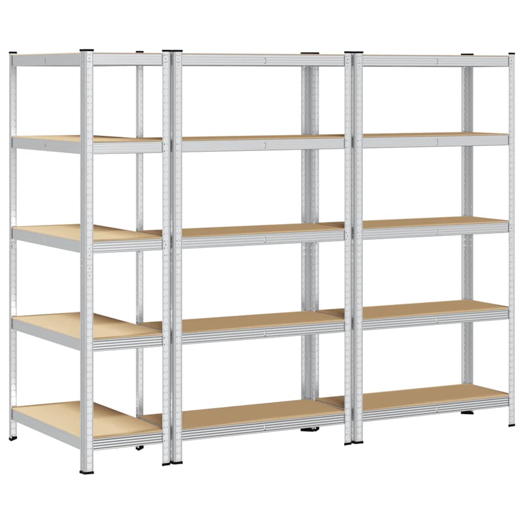 Étagères de rangement à 5 niveaux, 3 pièces, en acier argenté et matériau à base de bois