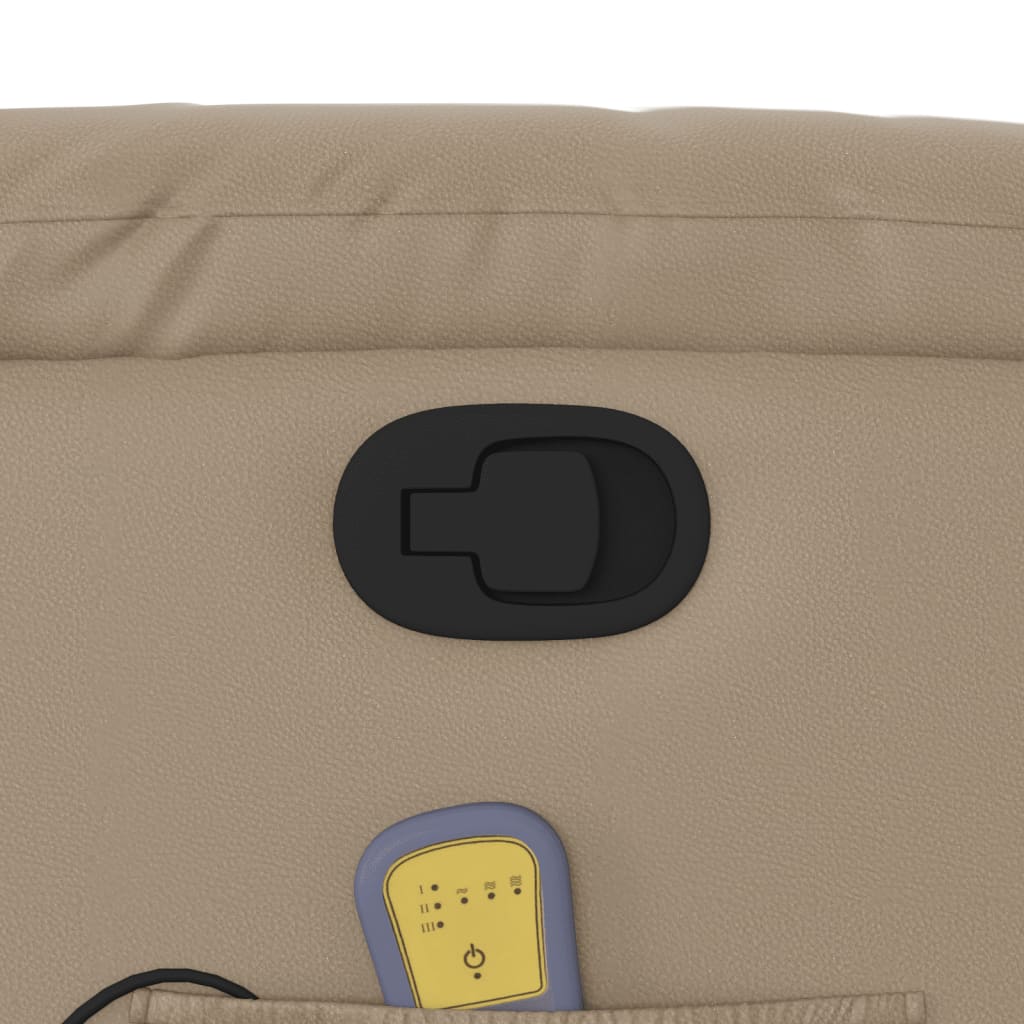 Détendez-vous dans ce fauteuil de massage extrêmement confortable ! Fonction d'inclinaison manuelle : Ce fauteuil inclinable se règle grâce à la poignée latérale. Vous pouvez ainsi ajuster manuellement le repose-pieds et le dossier pour une position assise optimale. Le dossier est inclinable jusqu'à 135 degrés. Tirez simplement sur la poignée pour le remettre rapidement en position initiale. Fonction vibration : Grâce aux 6 points de massage, profitez d'un massage ciblé. La télécommande incluse vous permet de sélectionner différents programmes de massage. La fonction massage est alimentée par le port USB, mais l'adaptateur secteur USB 5 V homologué n'est pas inclus. Confort d'assise : L'assise et le dossier au rembourrage épais, ainsi que les larges accoudoirs recouverts de similicuir, garantissent une assise confortable et douillette. Le similicuir est un matériau extrêmement résistant, résistant à la saleté et facile à nettoyer avec un chiffon humide. Sa surface lisse évoque la beauté luxueuse du cuir véritable. Poche latérale pratique : Ce fauteuil est doté d'une poche latérale pour ranger votre télécommande ou autres objets essentiels. Structure solide et stable : La structure en bois et en métal assure une structure solide et une grande stabilité. Ce fauteuil TV est confortable et durable.