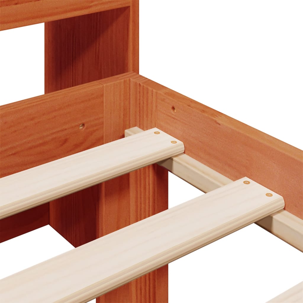Lit en bois massif avec étagère sans matelas ciré marron 100x200 cm
