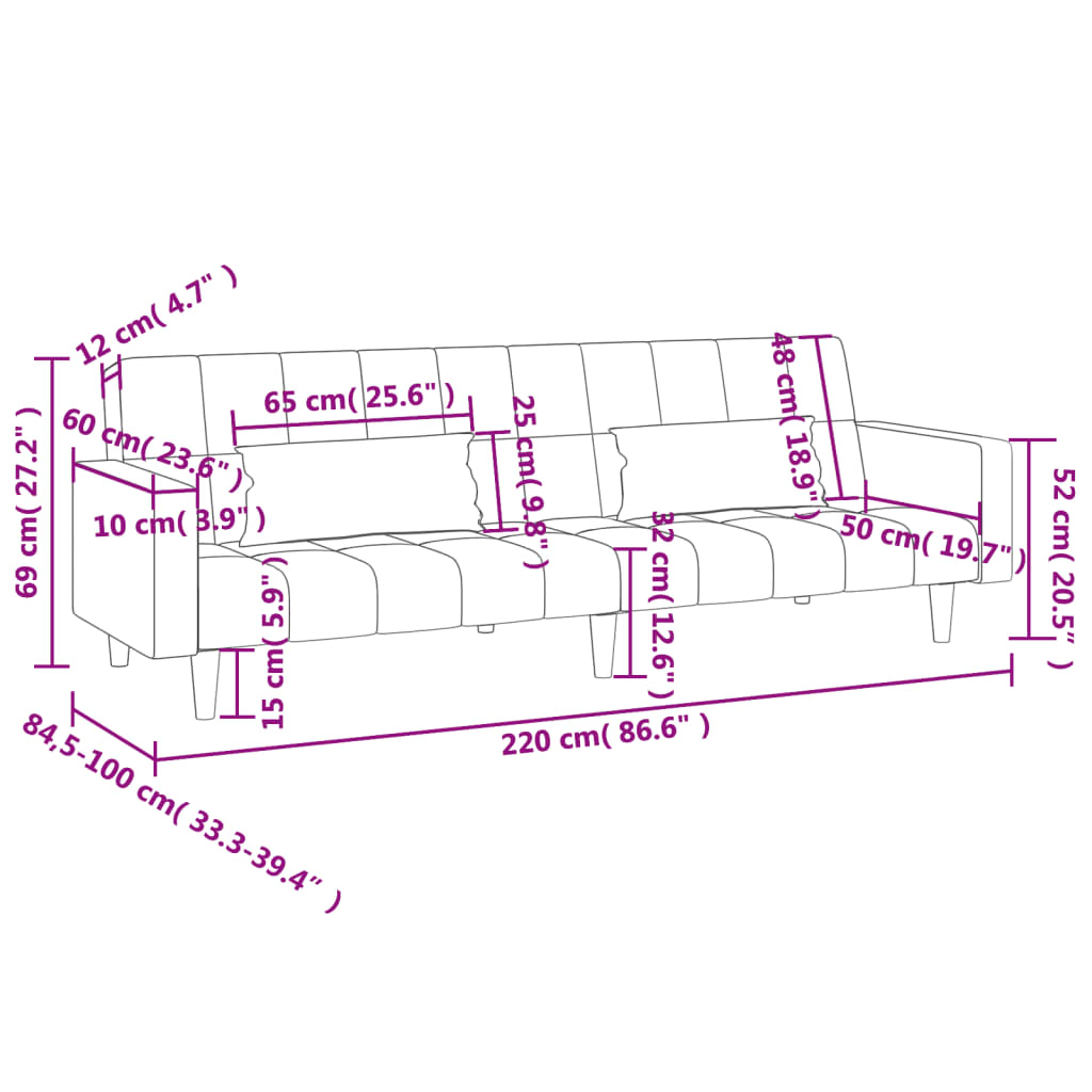 Canapé lit 2 places avec 2 coussins tissu gris foncé