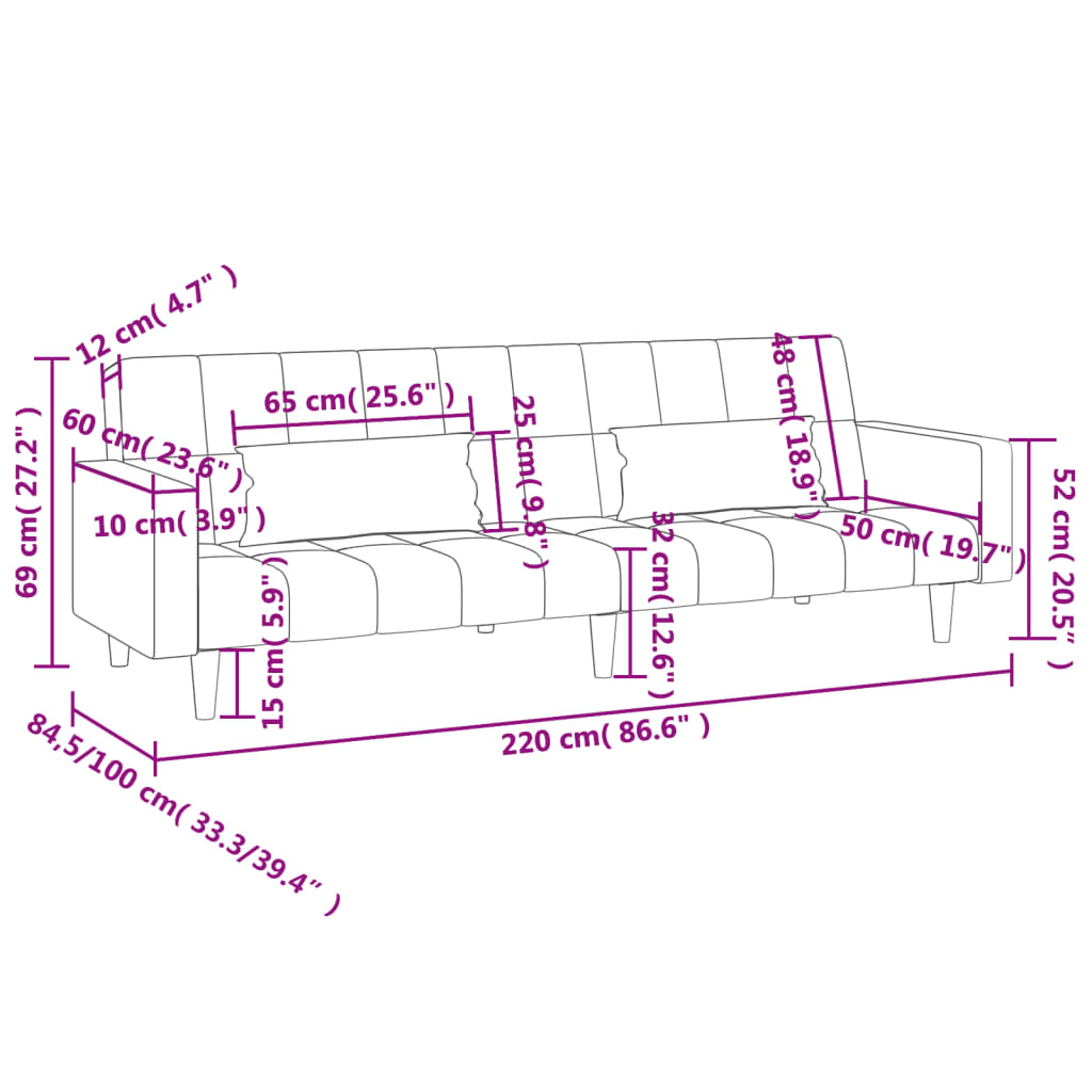 Canapé lit 2 places avec 2 coussins tissu taupe