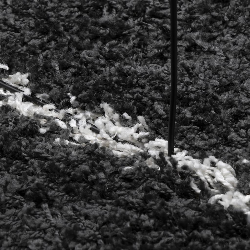 Tapis Shaggy Poils Longs Moderne Noir et Crème 160x160 cm