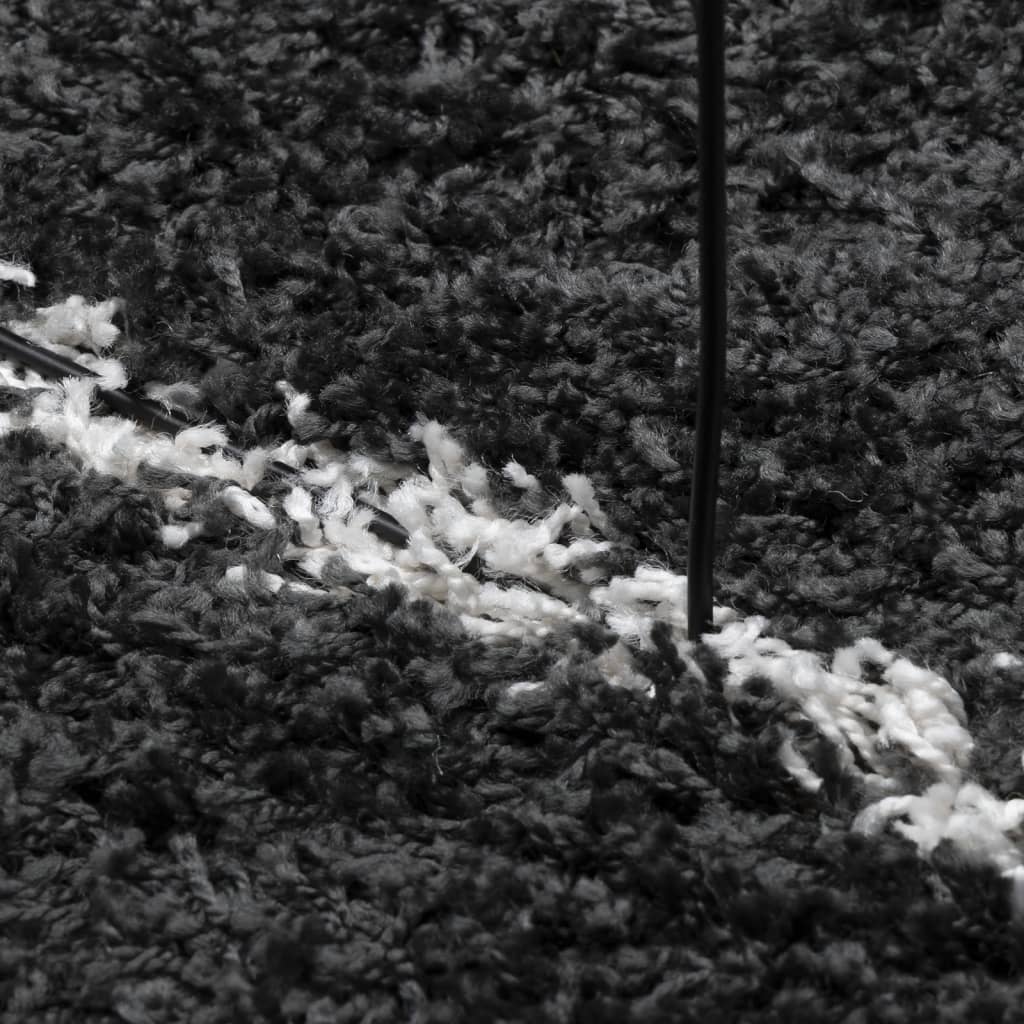 Tapis Shaggy Poils Longs Moderne Noir et Crème Ø 80 cm