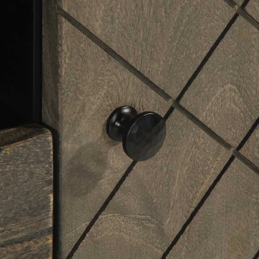 - Matériau : Bois de manguier massif avec finition sablée grise, bois d'ingénierie, métal