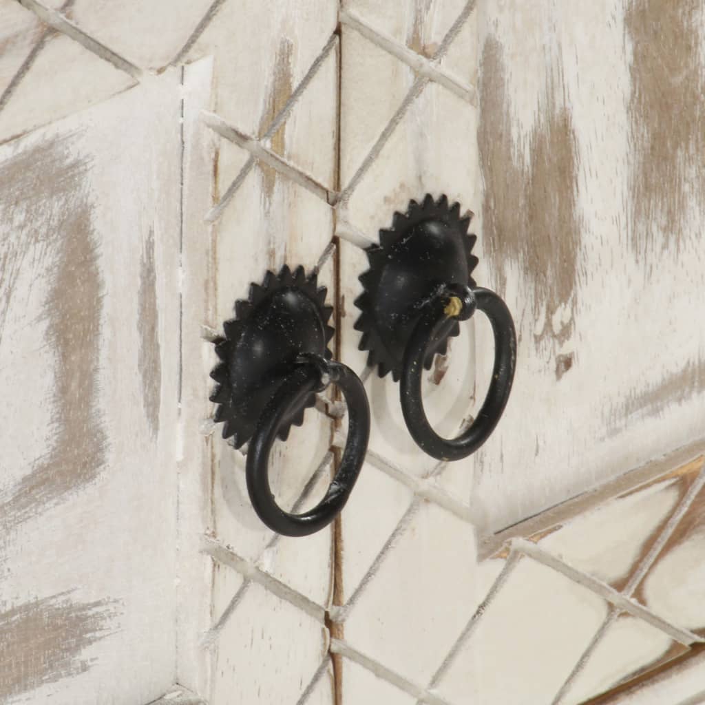 Ce meuble TV en bois dégage un charme rustique et s'intégrera parfaitement à votre intérieur. Fabriqué en manguier massif, il est magnifiquement peint en blanc. Chaque étape du processus, du polissage à la peinture en passant par le vernissage, a été réalisée avec le plus grand soin. Avec ses quatre portes, ce meuble TV offre un espace généreux pour vos appareils électroniques, vos livres et bien d'autres objets. Remarque importante : les couleurs et le grain du bois peuvent varier d'une pièce à l'autre, rendant chaque table basse unique. La livraison est aléatoire, garantissant l'exclusivité et la personnalisation de votre produit.