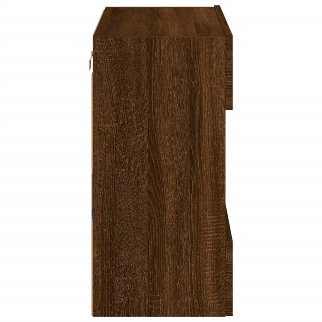 Meuble TV mural avec lumières LED aspect chêne marron