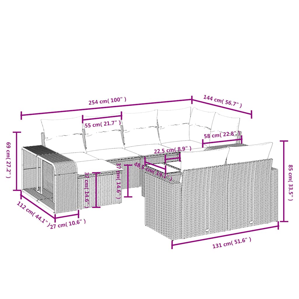 11-teiliges Gartensofa-Set mit Kissen, grau, Polyrattan
