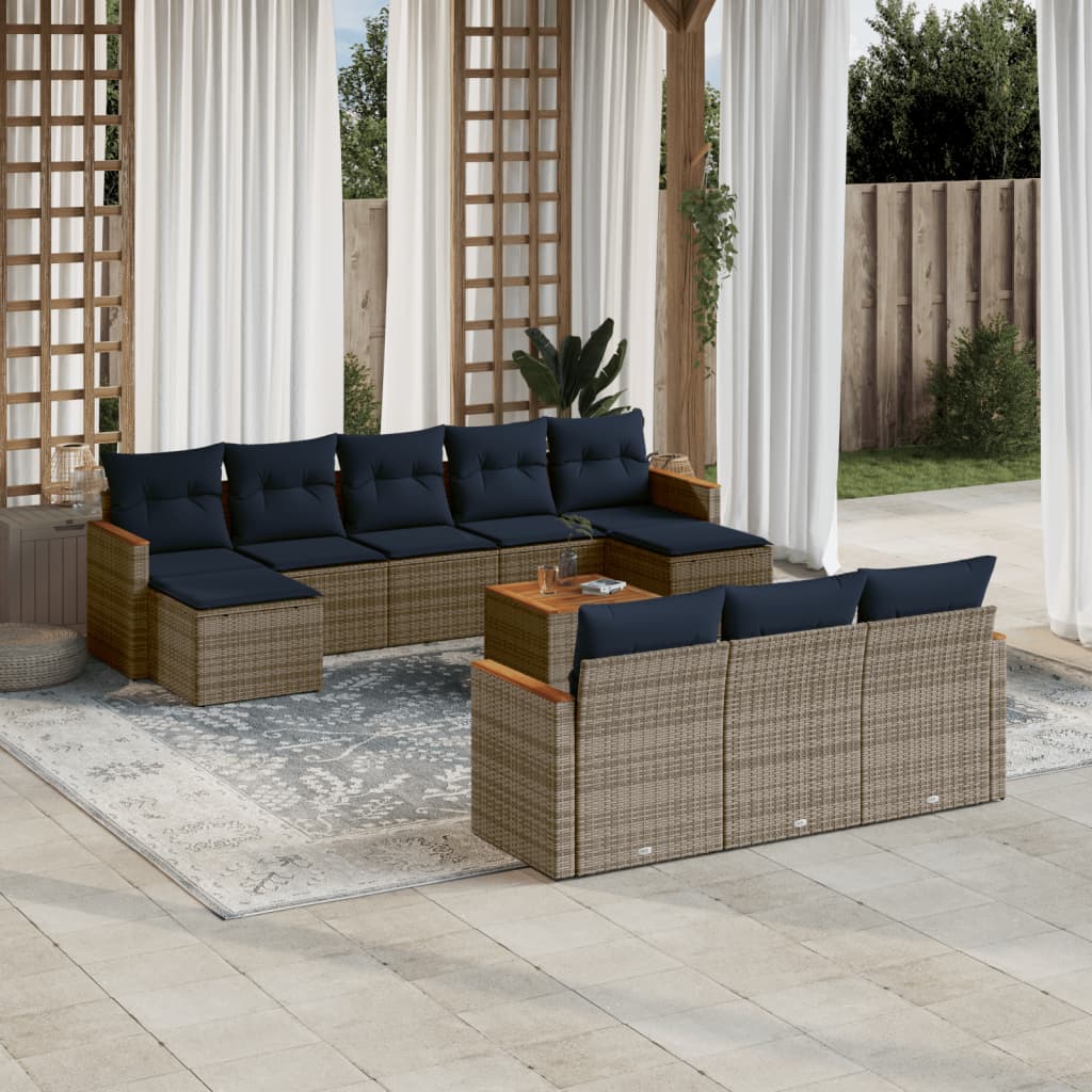 11-teiliges Gartensofa-Set mit Kissen, grau, Polyrattan