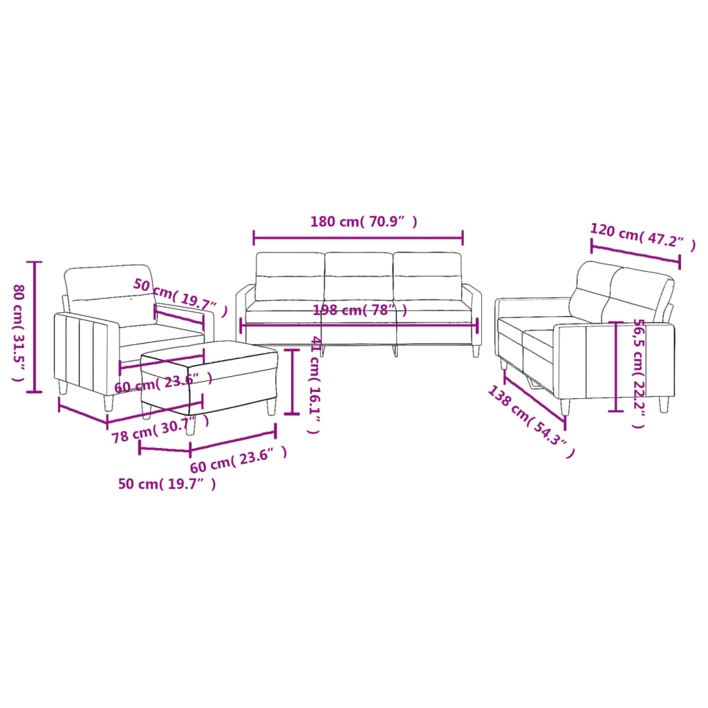 Diese Sofagarnitur bietet einen ausgezeichneten Platz zum Plaudern, Lesen, Fernsehen oder einfach nur zum Entspannen. Sie wird ein echter Blickfang in deinem Zuhause sein. Strapazierfähiger Stoff: Der Stoff zeichnet sich durch einen schlichten und sauberen Look aus und ist gleichzeitig atmungsaktiv und langlebig.Robustes und stabiles Gestell: Das Gestell aus Sperrholz und Metall verleiht der Sofagarnitur Robustheit und Stabilität.Bequemes Sitzerlebnis: Dank der dick gepolsterten Sitzfläche und der Armlehnen ist das Sofa sehr bequem.Vielseitiger Fußhocker: Der Hocker eignet sich zum Ausruhen der Füße beim Liegen auf dem Sofa, kann aber auch als zusätzliche Sitzgelegenheit in deinem Zimmer dienen. Darüber hinaus eignet er sich durch sein schlichtes Design und seine kompakte Größe für fast alle Wohnräume.