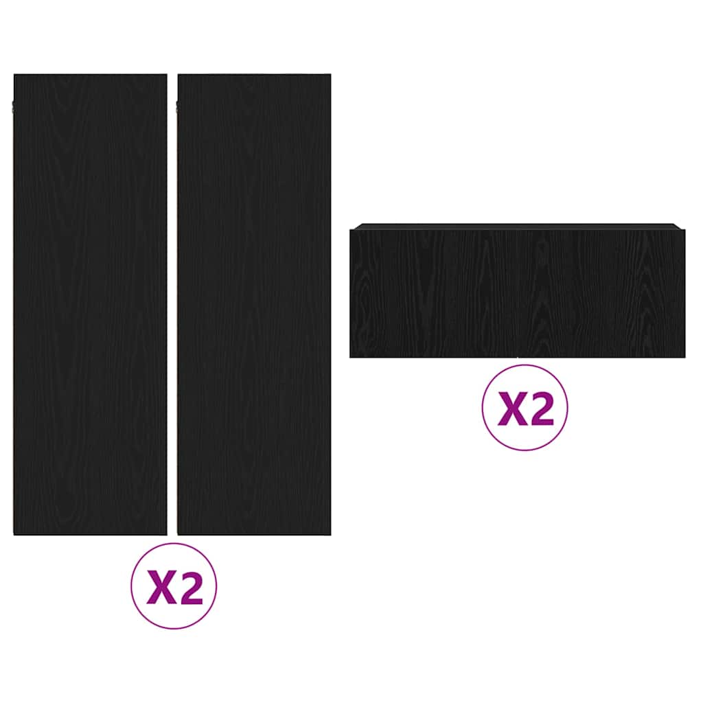 6-teiliges TV-Schrank Set -Wandmontiert, Schwarze Eiche Holzwerkstoff