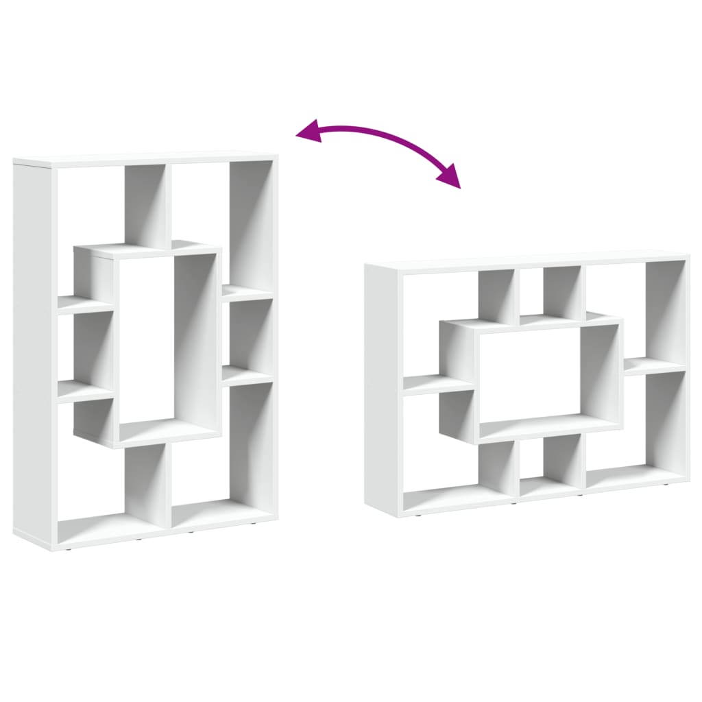 Das moderne Bücherregal verbindet geometrisches Design mit Stauraum – perfekt, um Ihren Raum stilvoll zu organisieren! Stabiles und langlebiges Material: Holzwerkstoff ist ein langlebiges und stabiles Material mit einer glatten Oberfläche, die feuchtigkeits-, verzugs- und spaltbeständig ist und sich daher für verschiedene Projekte bewährt.Reichlich Stauraum: Mit Fächern unterschiedlicher Größe bietet dieses Bücherregal flexible Aufbewahrungsmöglichkeiten für Gegenstände unterschiedlicher Formen und Größen.Flexible Platzierungsmöglichkeiten: Das Regal kann entweder in der Breite oder Höhe auf dem Boden positioniert werden und bietet so vielseitige Raumaufteilungsmöglichkeiten.Vielseitige Anwendungen: Das Präsentationsregal kann auch als Raumteiler verwendet werden und passt problemlos in jeden Raumstil. Sie können es im Wohnzimmer zur Präsentation von Dekoration, im Arbeitszimmer zur Aufbewahrung von Büchern und Dokumenten, im Schlafzimmer für Alltagsgegenstände und im Keller für Kleinkram aufstellen.Pflegeleicht: Dank seiner glatten Oberfläche lässt sich das Bücherregal leicht mit einem feuchten Tuch reinigen und benötigt weniger Pflege. Warnung:Um ein Umkippen zu verhindern, muss dieses Produkt mit der mitgelieferten Wandhalterung verwendet werden. Gut zu wissen:Schrauben und Dübel für die Wandmontage sind nicht im Lieferumfang enthalten. Wir empfehlen Ihnen, speziell für Ihre Wände geeignete Schrauben und Dübel zu verwenden. Im Zweifelsfall können Sie einen Fachmann um Rat fragen. Bitte lesen und befolgen Sie die Anweisungen Schritt für Schritt.