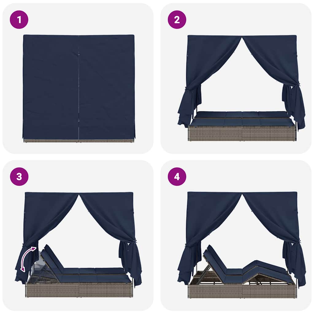 Doppelte Sonnenliege mit Dach Grau 205 x 129 x 200 cm PE Rattan