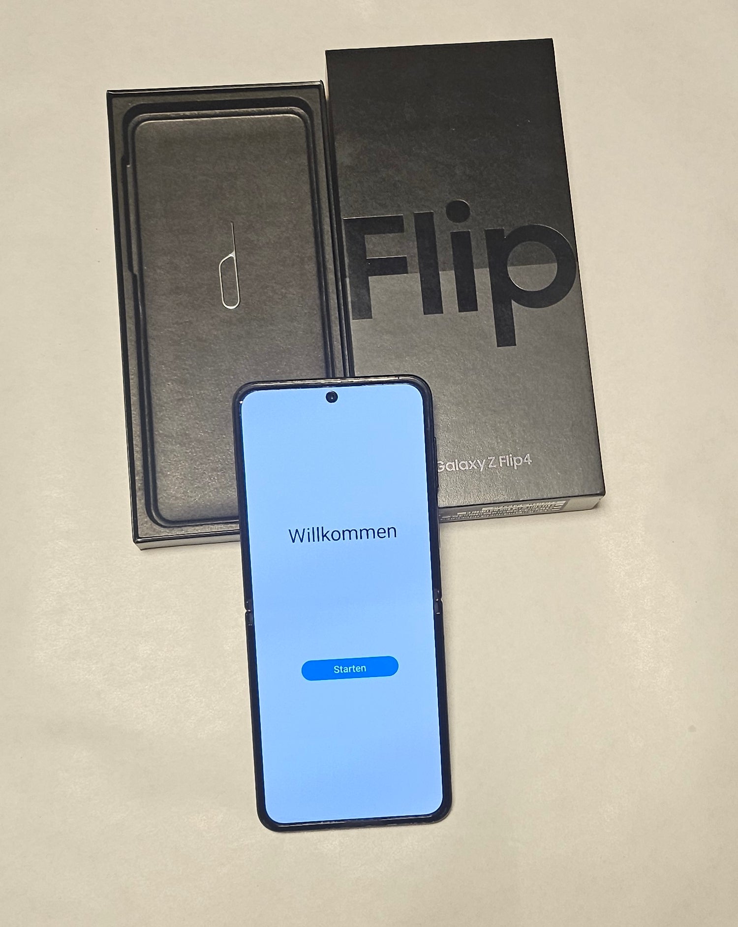Das Galaxy Z Flip4 vereint stylisches Design mit High-End-Technik im kompakten Format. Dieses Gerät wurde mit einem neuen Display ausgestattet und ist bereit für seinen nächsten Einsatz.