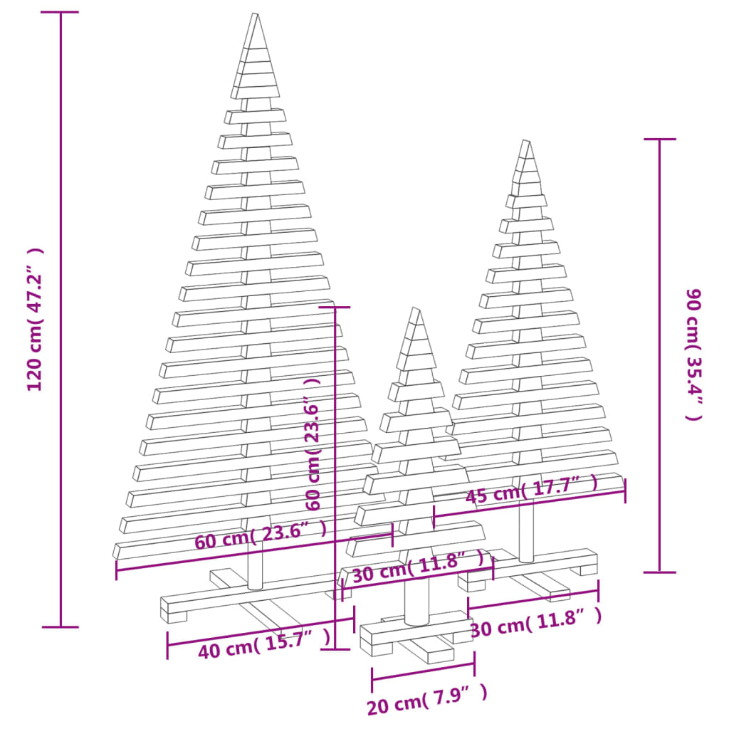 Weihnachtsbäume für Dekorationen 3 Stk. Massivholz Kiefer
